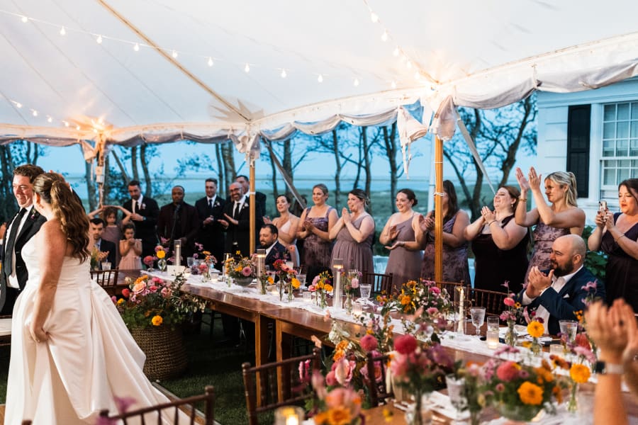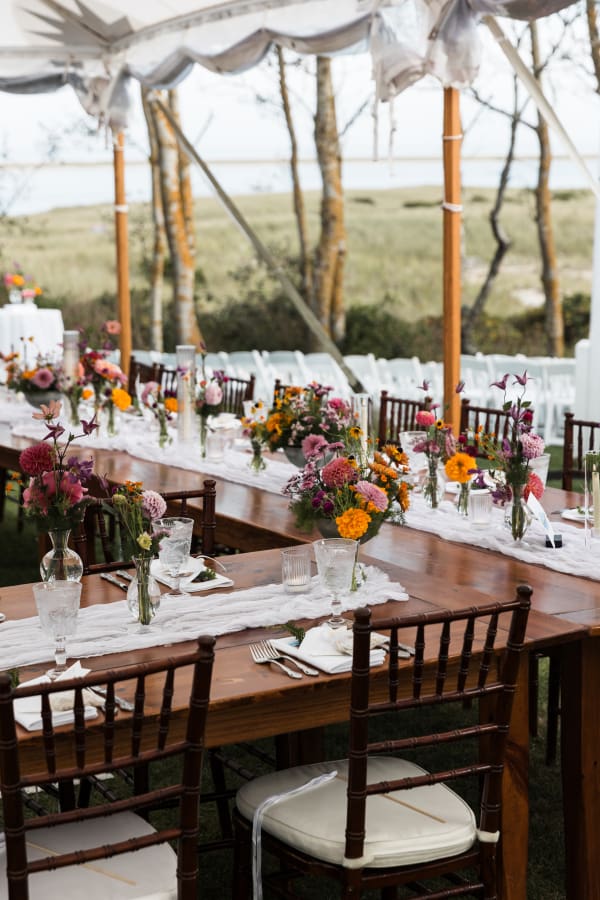 Enough presence to feel designed, enough air to keep the room open, and exactly as the Boston wedding coordinator intended this Chatham wedding to play out.