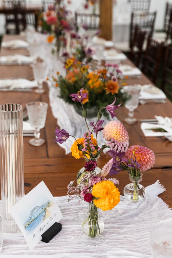 Flowers that moved from ceremony to reception without losing their meaning. Color that felt joyful and measured. A room paced carefully by a coordinator and filled thoughtfully by florals.
